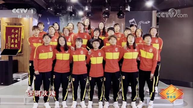 “古有巾帼不让须眉,今有女足铿锵玫瑰。”中国女足姑娘们让中国红在绿茵场上飞扬起来的一幕感动了无数国人。刚刚勇夺女足亚洲杯的姑娘们也通过云录制的方式,加入到了晚会当中。她们和尚雯婕、李斯丹妮一同唱响了《风雨彩虹铿锵玫瑰》。