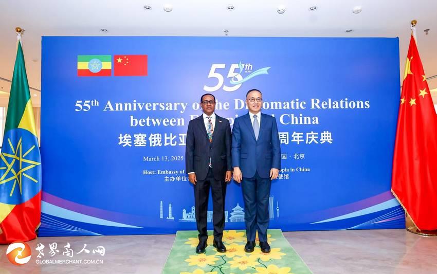 2025年3月13日,埃塞俄比亚与中国建交55周年庆祝活动举行。埃塞俄比亚联邦民主共和国驻中华人民共和国大使塔费拉·德贝·伊马姆阁下及夫人梅塞雷特·德米西出席。塔费拉大使阁下强调:55年,埃中两国携手共进,共创繁荣的深厚伙伴关系!