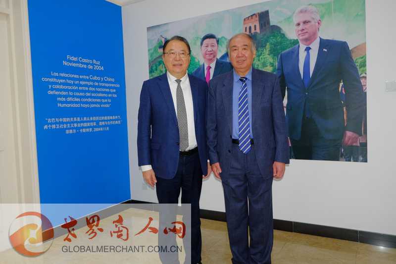 世界生态组织亚洲管理中心办公室主任、世界商人网主编王晓玲与古巴何塞 马蒂文化协会荣誉会员、《约会哈瓦那》的作者余熙先生交流合影