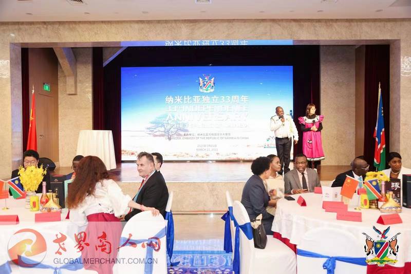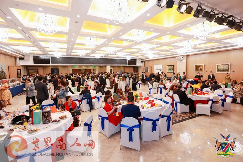 联合国驻华协调员常启德,非洲联盟驻华代表处常驻代表拉赫曼塔拉·奥斯曼,科摩罗驻华大使、塞内加尔驻华大使、卢旺达驻华大使、佛得角驻华大使、南苏丹驻华大使,塞舌尔驻华大使、冈比亚驻华大使、巴勒斯坦驻华大使、圣多美和普林西比驻华大使,加纳驻华大使,马里驻华大使,马拉维驻华大使、索马里驻华大使、喀麦隆驻华大使、坦桑尼亚驻华大使,毛里求斯驻华使馆公使、刚果(金)驻华使馆公使先生,阿里及利亚驻华使馆公使,委内瑞拉驻华使馆公使,俄罗斯驻华使馆科技参赞和各国武官,以及中国企业家代表共两百多人出席此次盛会。环球云链国际旅行社和世界商人网协办了此次纳米比亚第33个独立日庆典招待会。