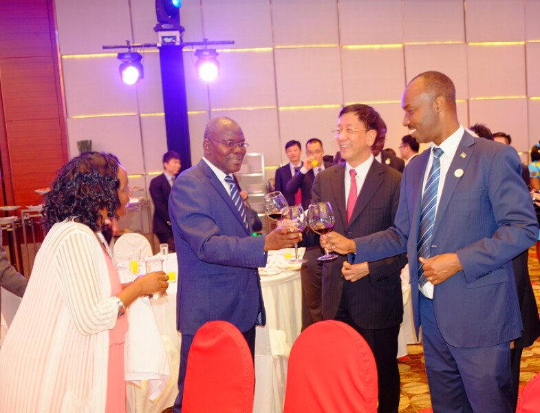 非洲驻华使团长、马达加斯加驻华大使维克托·希科尼纳,非盟轮值主席国卢旺达驻华大使查尔斯·卡勇加,中国全国人大常委会副委员长曹建明席间轮番向各国驻华使节祝酒