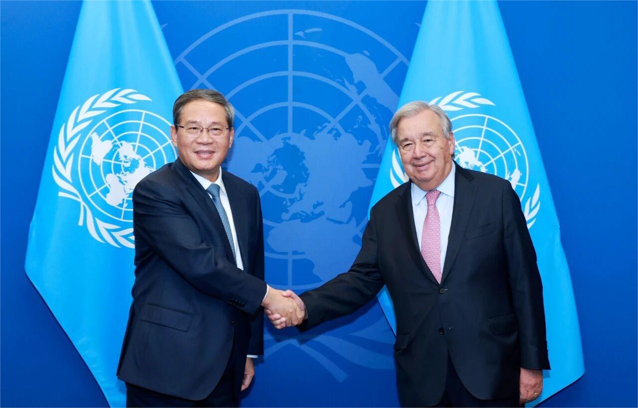 当地时间9月24日,国务院总理李强在纽约会见联合国秘书长古特雷斯。李强表示,前不久,习近平主席在上海合作组织天津峰会期间提出全球治理倡议,为加强和完善全球治理进一步贡献中国智慧、提出中国方案。秘书长先生应