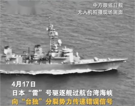 4月17日,日本“雷”号驱逐舰过航台湾海峡,向“台独”分裂势力传递错误信号,中国人民解放军东部战区全程跟监警戒,时刻保持高度戒备,国防部新闻发言人在回应中强调中方“有效瞰制管控”,一段无人机拍摄的现场画面
